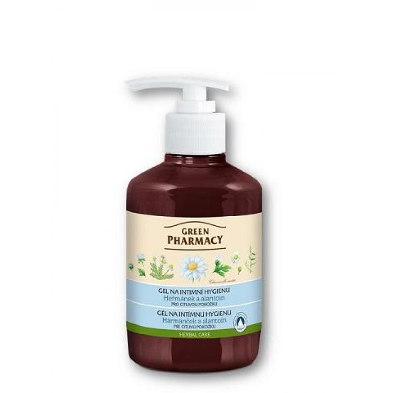 Green Pharmacy gél na intímnu hygienu 370ml PRE CITLIVÚ POKOŽKU Harmanček a alantoín Na každodennú intímnu hygienu. Neobsahuje žiadne mydlo. Čistí a hydratuje. Jemná starostlivosť s pocitom pohodlia a sviežosti. Jednoduché použitie. Hodnota pH gélu je identická s hodnotou pH intímnych partií. Chráni pred podráždením. Extrakt z harmančeka upokojuje podráždenie, alantoín pomáha zbaviť sa menších poškodení sliznice.