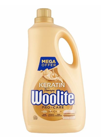 Woolite Pro-Care obsahuje keratín, ktorý ošetruje, chráni, hydratuje a zjemňuje vlákna, zároveň im dodáva flexibilitu a pôsobí nekrčivým efektom. 3,6l